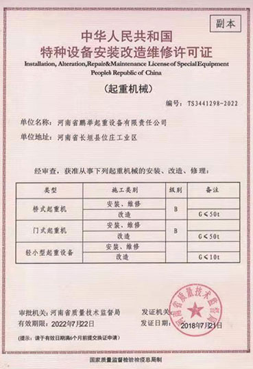 - 公司主要產(chǎn)品有單、雙梁橋門式起重機、冶金起重機、架橋機、懸臂吊、電動葫蘆、隱爆系列起重機等多項品種。廣泛應(yīng)用于機械、冶金、電力、鐵路、水利、港口等多種行業(yè)。在東北三省及內(nèi)蒙古自治區(qū)建有營銷、服務(wù)經(jīng)營網(wǎng)點。